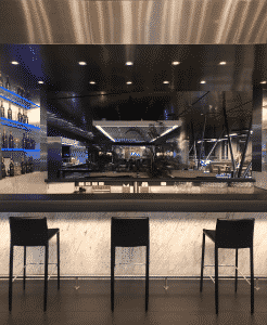 Pois bem, dentro da Sala VIP há um bar patrocinado pela marca de Vodka Ciroc. Lá, é servido uma variedade satisfatória de vinhos brancos e tintos, cervejas e, naturalmente, bebidas não alcoólicas. O bar é bastante descolado e muitas vezes serve de ponto de encontro para networking entre viajantes. Confira a foto: